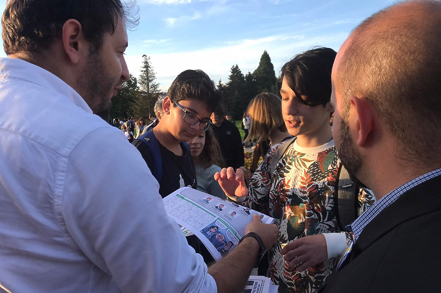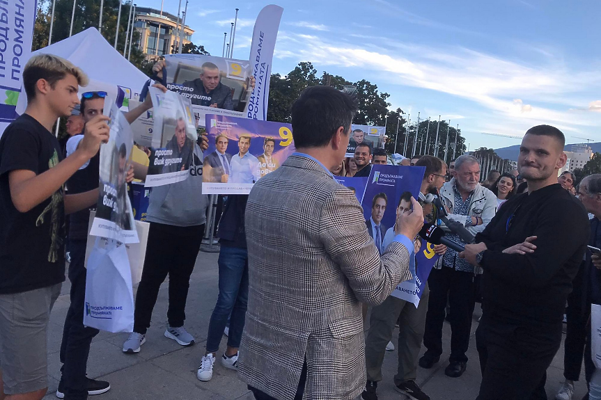 А на няколко метра от него същото правеше и Кирил Петков. Озовал се насред група ученици, Петков надълго разговаря с тях, за да стане ясно накрая: те искат да се запишат в младежката структура на "Продължаваме промяната".