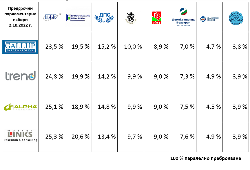 Ето и картината при "Маркет линкс" при 100 на сто от паралелното преброяване.