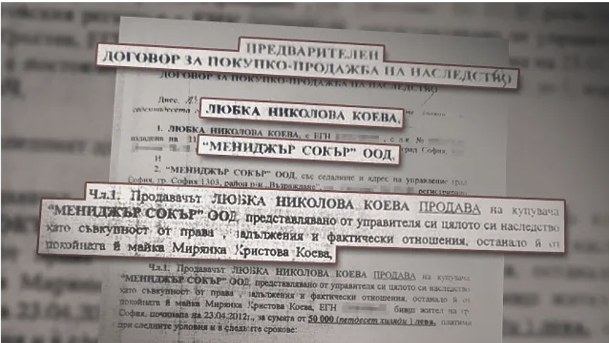 А схемата е следната, разказват от прокуратурата. След като се подпише предварителният договор, купувачът превежда на продавача капаро в минимален размер по банкова сметка. Чрез сложна схема фирмата манипулира подписа на жената и успешно купува апартамента. Така в отсъствието на възрастната жена Любка Коева, договорът става окончателен и срещу 50 000 лева „Мениджър Сокър“ придобива имущество и банкови авоари за 7 милиона лева.