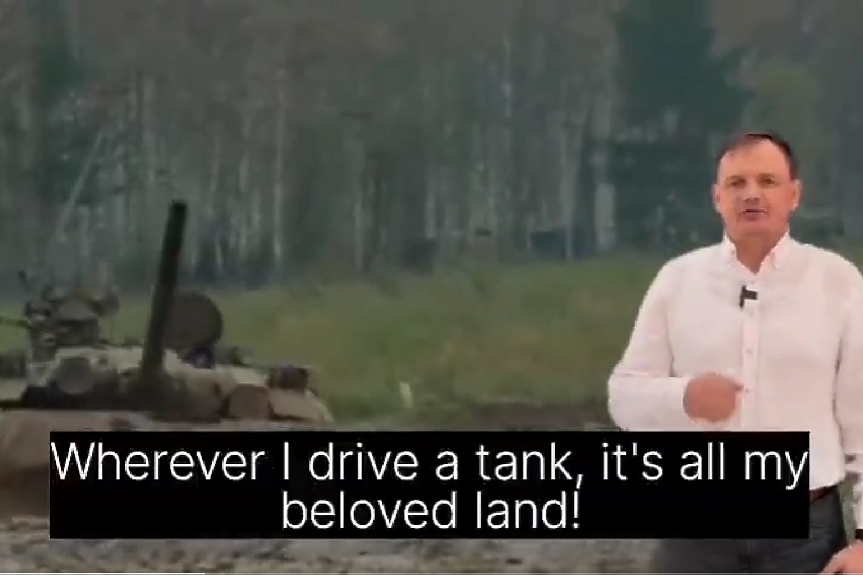"Където карам танк, всичко това е моята любима родина", продължава той.