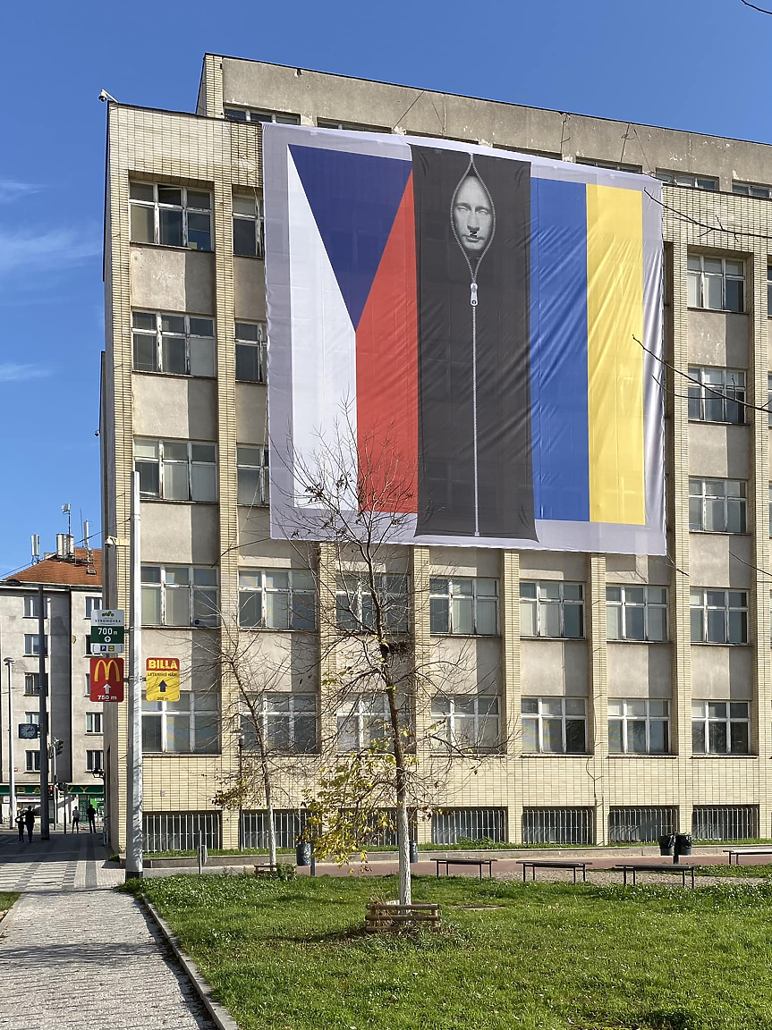 По идея на чешкия вицепремиер и вътрешен министър Вит Ракушан на сградата на ведомството се появи интересна инсталация. На зданието на пражката ул. Letná се виждат чешки и украински знамена заедно със снимка на руския президент Владимир Путин, закопчан в черен чувал за трупове.