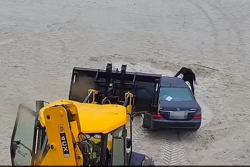 Млад нашенец е отнесъл глоба от властите в страната, след като навлязъл с "Мерцедес"-а си в популярен плаж в северната част на страната. От видеото се вижда, че става въпрос за огромна лимузина от S-класа.