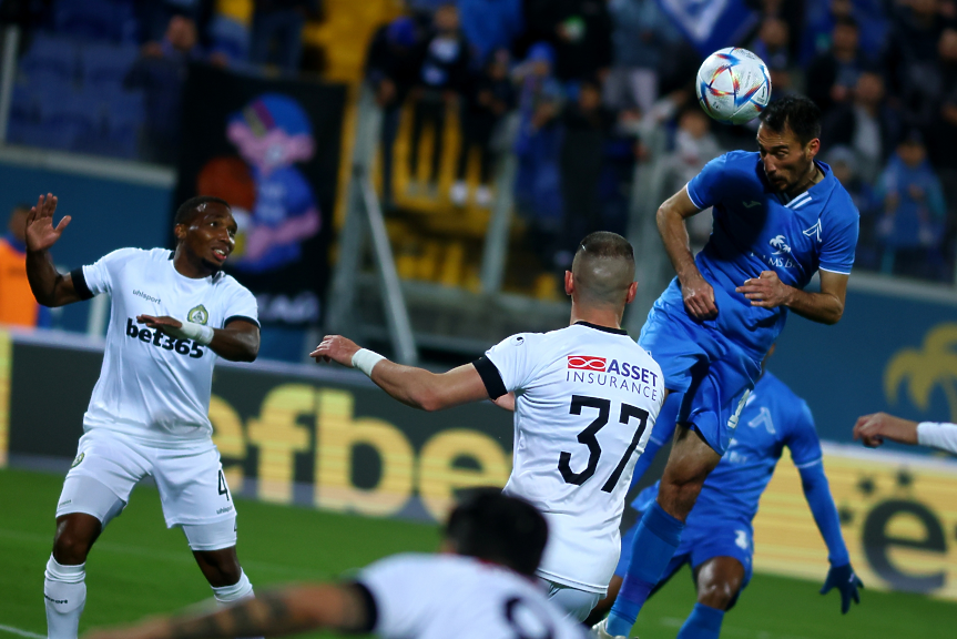 Двубоят започна интересно и още в третата минута попадение за "белите" беше отменено заради засада на Ахмед Ахмедов, който беше изведен зад защитата с подаване на Галин Иванов. ВАР не зачете попадението.