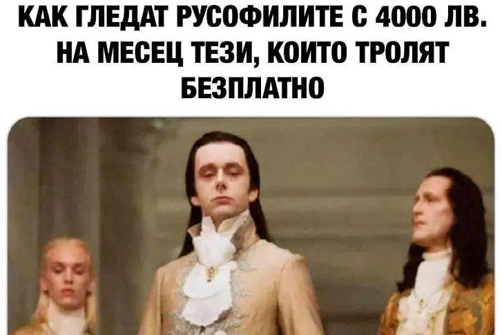 Един от станалите най-популярни за няколко часа колажи, озаглавен "Как гледат русофилите с 4000 лв. на месец тези, които тролят безплатно".