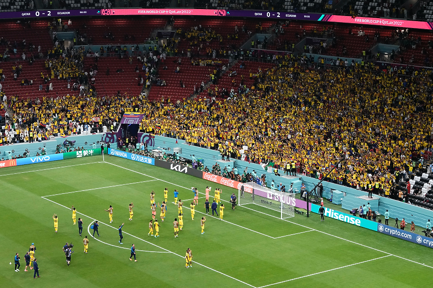 Снощи катарците обявиха, че всичките 67 372 седящи и покрити места на стадион “Ал Баит” са били разпродадени и заети. Снимки и видеозаписи обаче показват, че това далеч не е така. “Бели петна” личат още на откриването и в началото на двубоя. Още преди Еквадор да вкара два гола и покаже, че е далеч по-добър. А когато това стана - на полувремето суперсъоръжението остана наполовина празно.