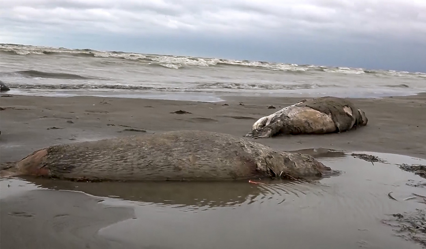 Първоначално регионалните власти съобщиха в събота, че 700 мъртви тюлена са били открити на брега, но по-късно стана ясно, че бройката им е далеч по-голяма - близо 2500. Заур Гапизов, ръководител на Каспийския център за опазване на околната среда, излезе с официално съобщение, според което най-вероятно тюлените са починали преди две седмици и добави, че няма следи да са станали жертва на бракониери.