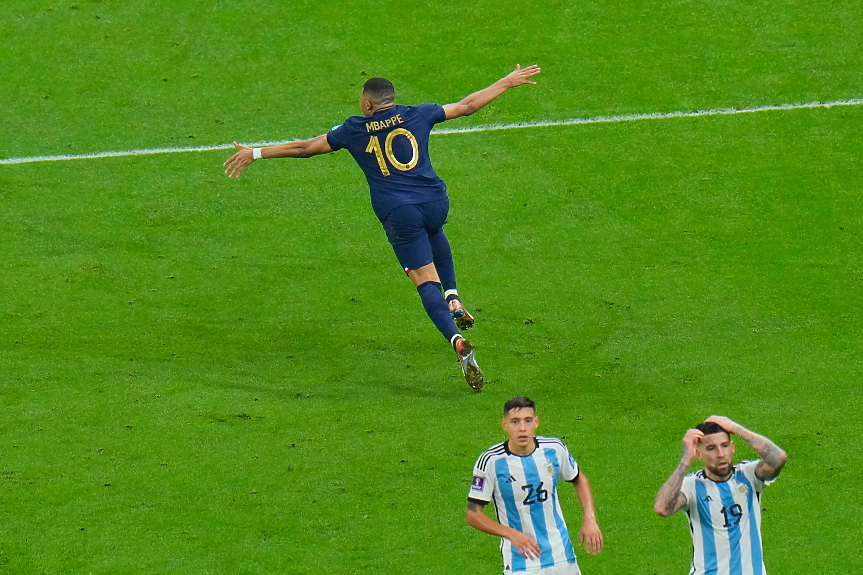 Не задълго този път. Малко след това имаше корнер пред вратата на “гаучосите” и след удар защитник игра с ръка - втора дузпа за Франция. Тук се намеси ВАР и отсъди точно. В 109-ата минута Килиан Мбапе вкара, направи хеттрик и отново излезе напред при голмайсторите с 8 гола - 3:3 в 118-ата.