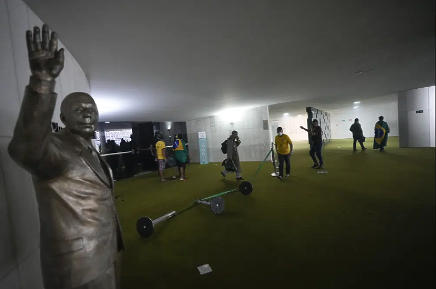 Подобно на щурма на американския Капитолий на 6 януари 2021 г. няколко хиляди привърженици на Болсонаро нахлуха в трите сгради само седмица след встъпването в длъжност на новия бразилски президент от левицата Луиз Инасио Лула да Силва.