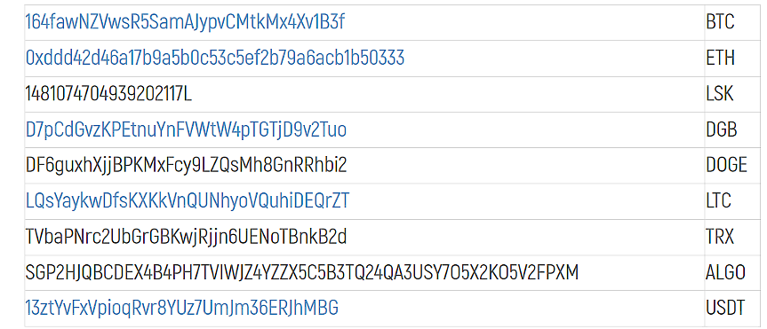 Изключение прави Dogecoin адреса, на който са получени 15 dogecoin-а след обявяването на санкциите. Това е с равностойност под 1 долар.