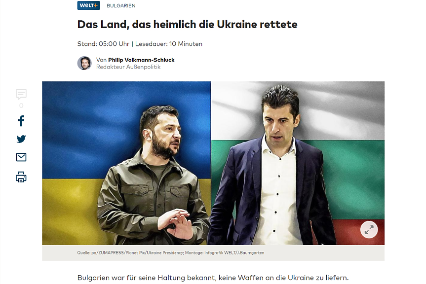 "Медиите от групата на "Ди Велт" в последните години не са порицавани за нарушаване на точка 7", уточняват от германски Съвет по печата пред ДВ. Справка на сайта на Съвета посочва, че наказания по тази точка не са налагани на групата на "Ди Велт" от над 10 години. "За въпросната статия ("България - страната, която тайно спаси Украйна" - б.а.) не са получававани оплаквания при нас", посочват от медийния регулатор пред ДВ.
