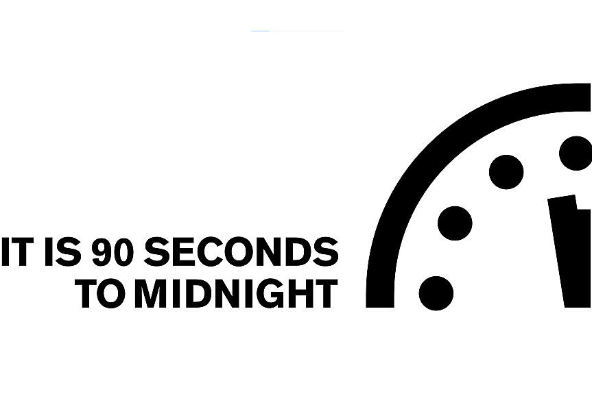 "Часовникът на Страшния съд", или The Doomsday Clock, символичната мярка за това колко близо е човечеството до глобална катастрофа, днес бе поставен на само 90 секунди от полунощ.