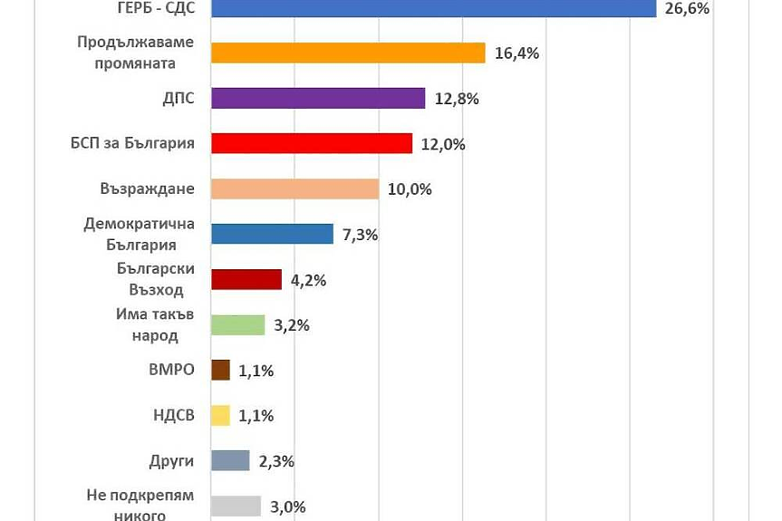 Месец преди началото на предизборната кампания, нагласите за предстоящия парламентарен вот показват стабилна електорална кондиция на ГЕРБ и известно свиване на електоралната тежест на ПП, сочат данните.