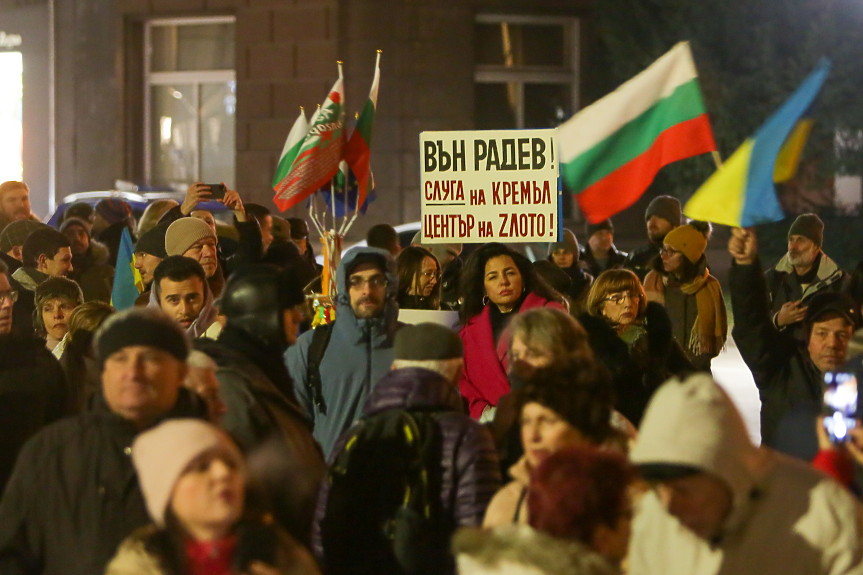 Протестиращи граждани се събраха пред президентството тази вечер въпреки студа и спряха движението по „жълтите павета“ с искане за оставка на държавния глава Румен Радев. Демонстрацията бе организирана от Инициатива „Бъдеще с памет“ и бе под надслов: