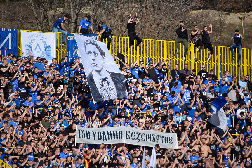 Гостите, които излязоха със специален черен екип в чест на 150-годишнината от обесването на своя патрон, откриха чрез Асен Чандъров в 13-ата минута от дузпа.