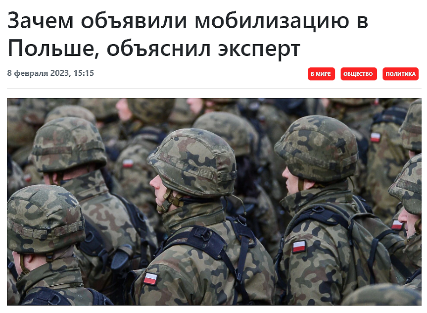 През февруари руската телевизия „Россия 1“ разпространява невярната информация за това, че Полша мобилизира танкисти, които да се бият в Украйна за „изконно полските земи“.