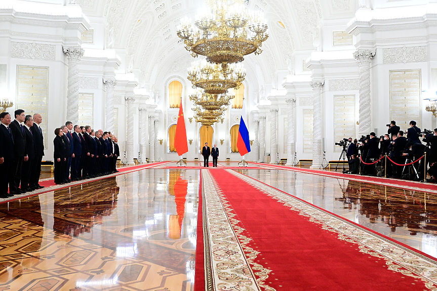 Китайският лидер пристигна на главния вход на Големия Кремълски дворец и се качи на втория етаж по парадното стълбище, по протежението на което от двете страни беше разположен почетен караул. Путин и Си се поздравиха. Оркестърът изпълни държавните химни на Русия и Китай. В залата присъстваха членовете на делегациите на двете страни.