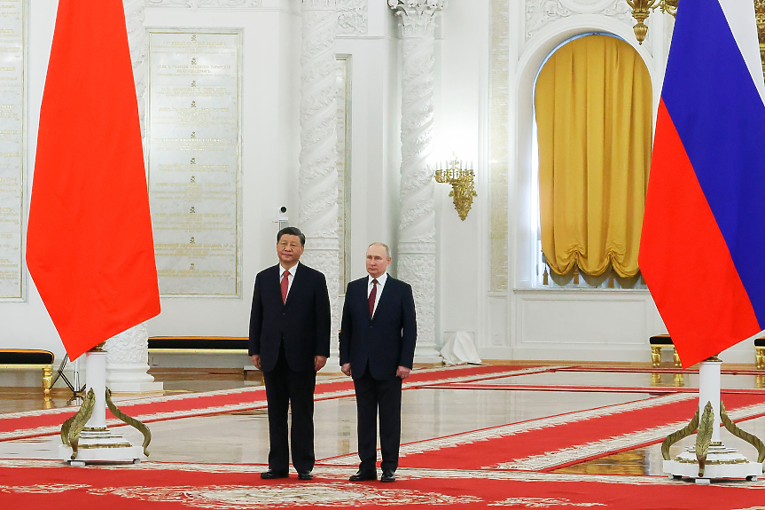 По-рано във вторник в Георгиевската зала на Големия Кремълски дворец се състоя церемонията за официалната среща между Путин и Си, предаде ТАСС.