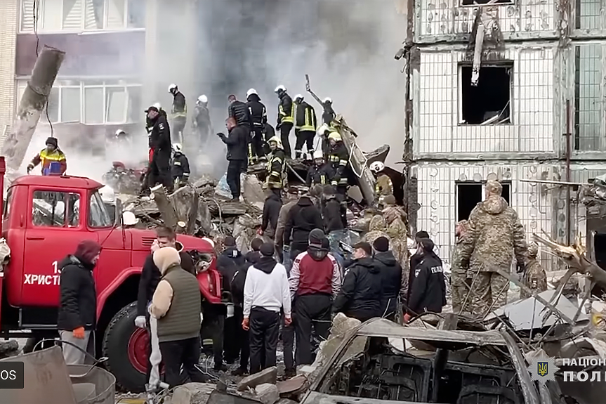 Четиринадесет от жертвите, включително две деца са в ударен от две руски ракети жилищен блок в Уман, Черкаска област, съобщи украинският вътрешен министър Игор Клименко. Девет души са приети в болница, един от които в тежко състояние.
