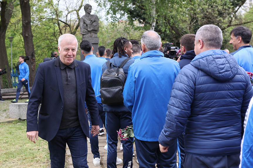 От 12:30 часа ръководството, треньорският щаб, представителният отбор, деца от школата на „Левски“, служители, ветерани и привърженици поднесоха венци и цветя пред бюст-паметника на "синята" на арената в "Подуяне". Присъства и спортният министър Весела Лечева.