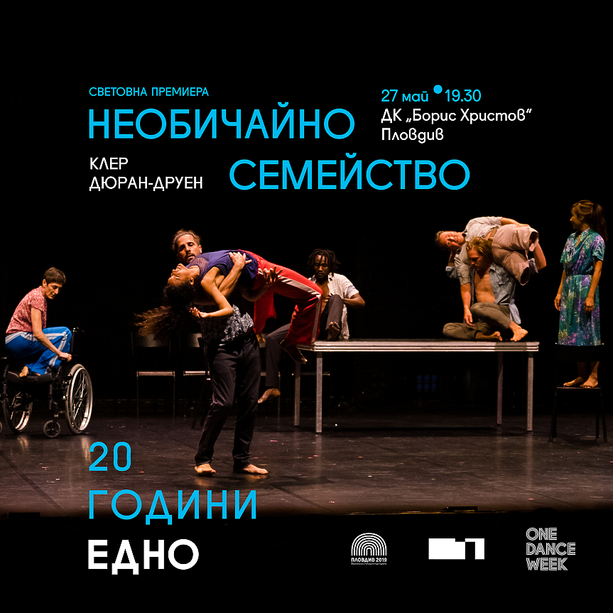 Тази пролет се навършват 20 години от създаването на „Едно“. Отбелязваме този юбилей със световната премиера на „Необичайно семейство“. След Пловдив, спектакълът ще бъде представен в легендарния за света на танца Théâtre de la Ville в Париж през септември.