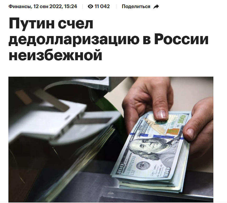 Русия на свой ред съвсем реално се „дедоларизира“ и това е рядък случай на съвпадение на пропагандните лозунги с делата. Само че не защото иска, а защото се налага.
