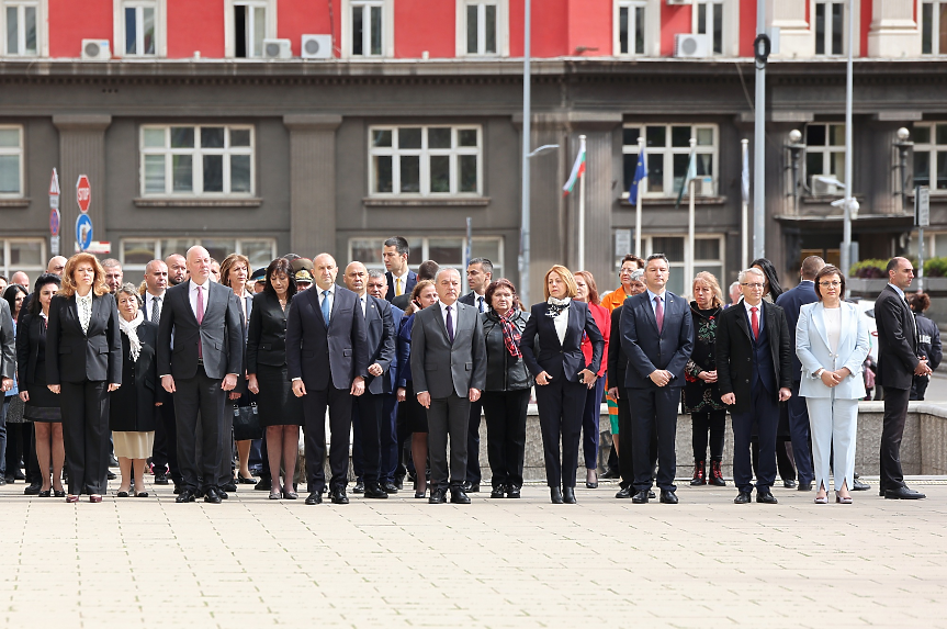 Церемония по издигането на знамето на Европейския съюз имаше сутринта пред президентската институция. На нея присъстваха Радев, вицепрезидентката Илияна Йотова, председателят на НС Росен Желязков, премиерът Гълъб Донев, кметицата на София Йорданка Фандъкова, министри и представители на парламентарно представените политически формации. По-рано Радев и Йотова поднесоха цветя пред Паметника на незнайния войн в София по случай отбелязването на 78 години от победата над нацизма във Втората световна война.