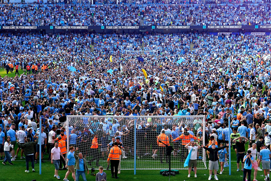 Запалянковци на "Сити" по трибуните освиркаха сцената, а след това изразиха недоволство в социалните мрежи, подобно на почитатели на "Челси".