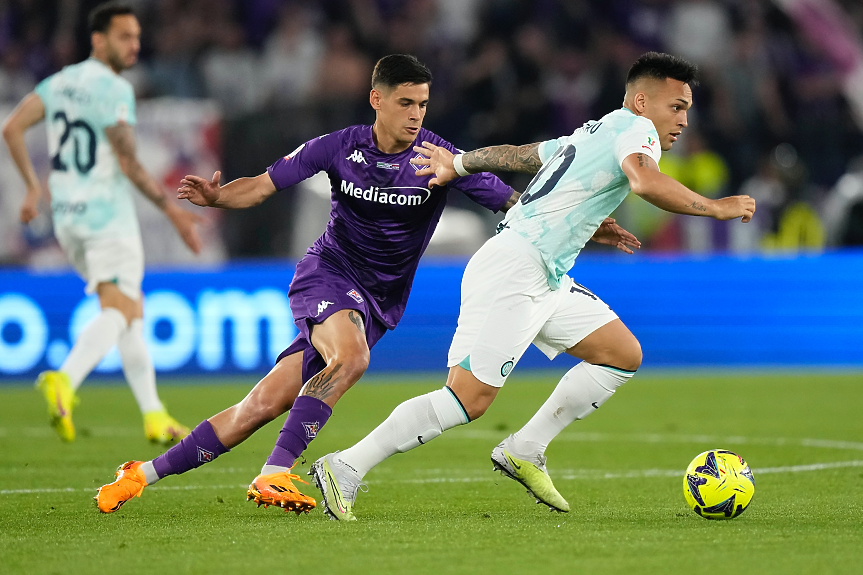 "Фиорентина", който бе символичен домакин, откри още в третата минута чрез Николас Гонсалес, който засече центриране по земя на Джонатан Иконе. В същото време тифозите на "Интер" протестираха заради невъзможността да си купят билети с предимство за финала на Шампионската лига.