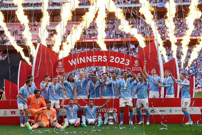 "Манчестър Сити" взе още една купа и е само на победа от мечтания "требъл". Отборът на Пеп Гуардиола надви "Манчестър Юнайтед" с 2:1 на финала в турнира за Купата на Футболната асоциация на "Уембли". Вече стана шампион, това означава домашен дубъл.
