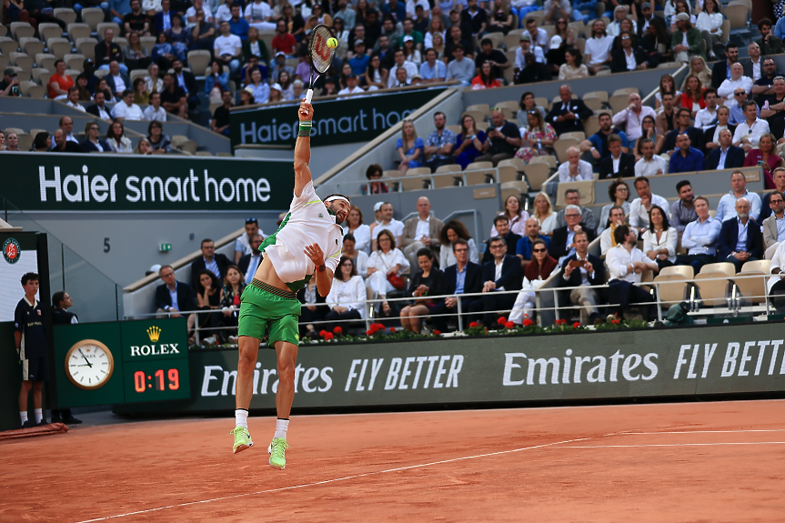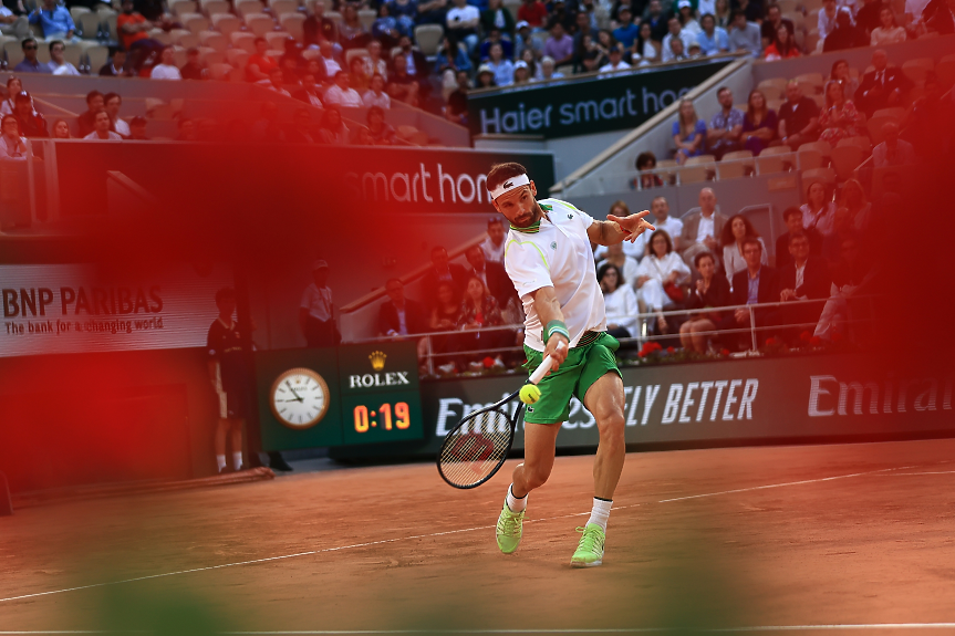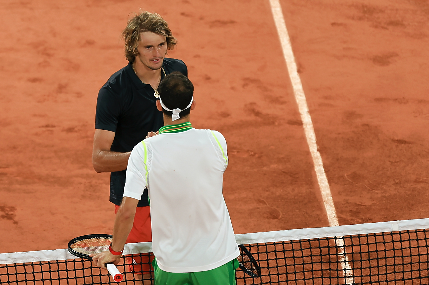 Първата ни ракета напуска Париж, след като отстъпи пред олимпийския шампион Александър Зверев от Германия с 1:6, 4:6, 3:6 за 2 часа и 19 минути на централния корт.