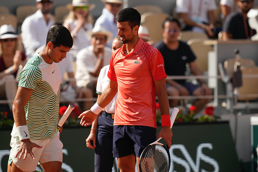 Двубоят Джокович - Алкарас бе помрачен от физически проблем на младия испанец в началото на третия сет. Не стана ясно какво точно се случи с Карлос, но той почти рухна на корта, след като изравни сетовете и започна добре в третата част.