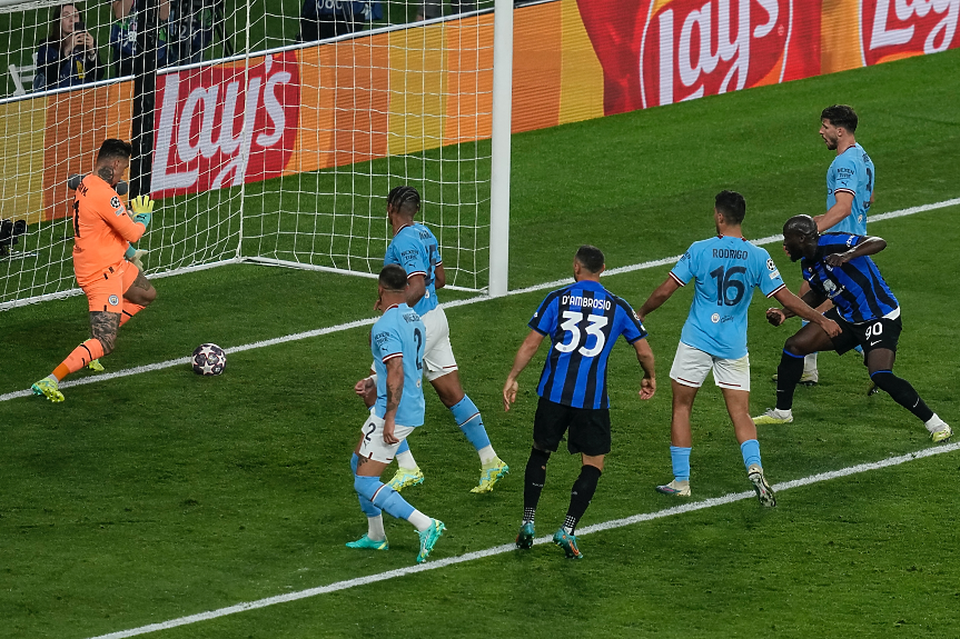 Фоудън пропусна да реши всичко в 78-ата от чиста позиция. В следващите минути "Интер" можеше да вкара битката поне в продължения. Лукаку направи пропуск, като не уцели вратата, но в 89-ата изтърва по невероятен начин пред извадилия късмет Едерсон, улучвайки крака му (долу).