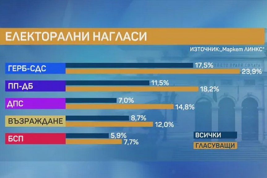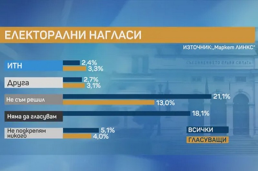 Ако изборите бяха днес, то резултатите от тях щяха да са сходни с тези от 2 април. Коалицията ПП-ДБ обаче получава негатив.