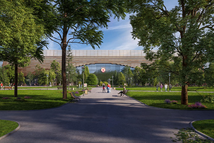 Съществуващата ограда ще бъде разтурена, а като цяло на мястото на сегашните сгради ще има "богата на зеленина паркова среда". "Червените" обещават да засадят над 300 дървета.