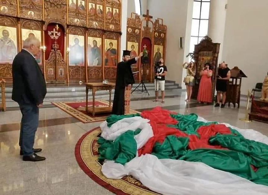 По-рано през деня българският флаг бе осветен в църква - поставен "в насипно състояние" на пода. Което възмути множество граждани.