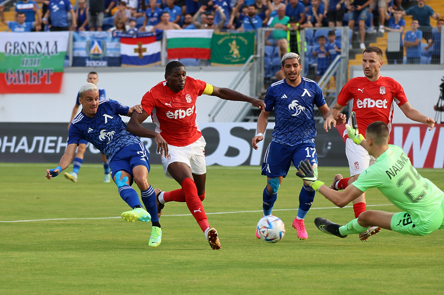 В 32-ата минута "Левски" поведе след бърза атака и добра комбинация, увенчана от бразилеца Рикардиньо. Радостта в синьо не трая дълго. В 41-ата съдията Радослав Гидженов отсъди дузпа (имаше и ВАР) за гостите - доста спорна, за единоборство между Симеон Петров и Рикардиньо при свободен удар.