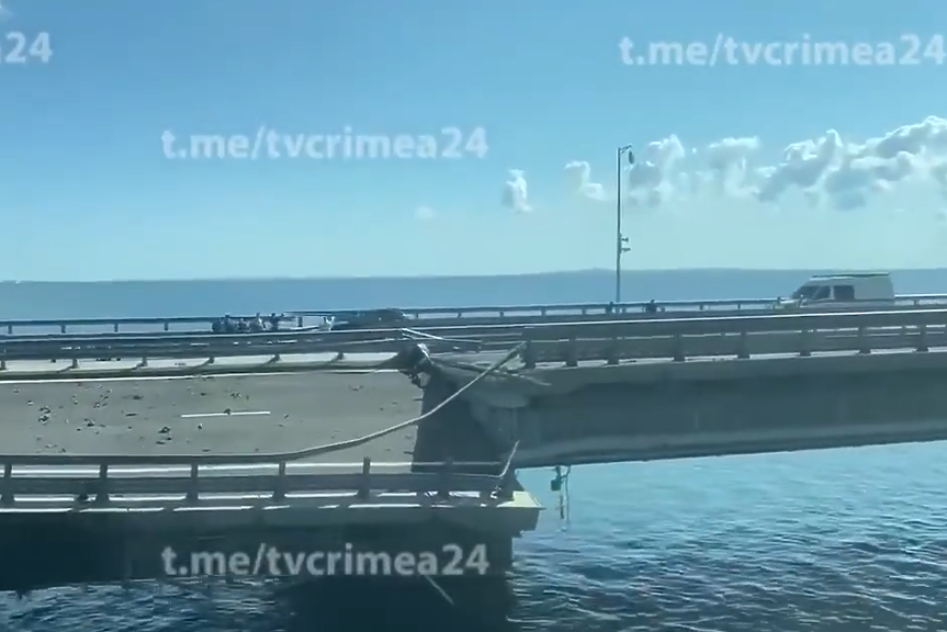 Кримският мост бе разрушен частично за втори път в рамките на десет месеца. За последен път участък на съоръжението се срути на 8 октомври 2022 г. Тогава на конструкцията бе взривен камион. Руският президент Владимир Путин обвини Украйна в "терористична атака". Официално украинската страна все още не е поела отговорност. Кримският мост е значим, тъй като окупаторите го използват като логистичен път за доставка на военна техника и то не само на окупирания полуостров.