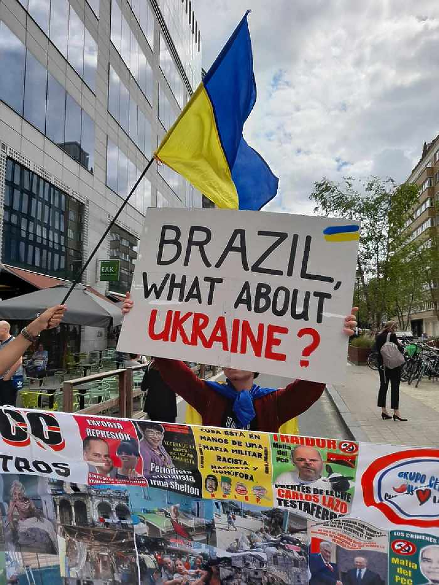 Протестираха дори няколко бразилци. Те бяха недоволни от президента си Инасиу Лула и го обвиниха в приятелство с Диас-Канел и Мадуро, както и в нехайство към съдбата на Украйна. Преди три месеца Лула предложи на Киев да се откаже от Крим и излезе със свой мирен план, който обаче бе отхвърлен от Володимир Зеленски.