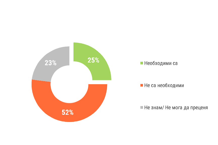 Повече от половината (52%) от българите са на мнение, че не са необходими предсрочни парламентарни избори, докато една четвърт смятат, че са необходими. Почти толкова (23 на сто) не могат да преценят.