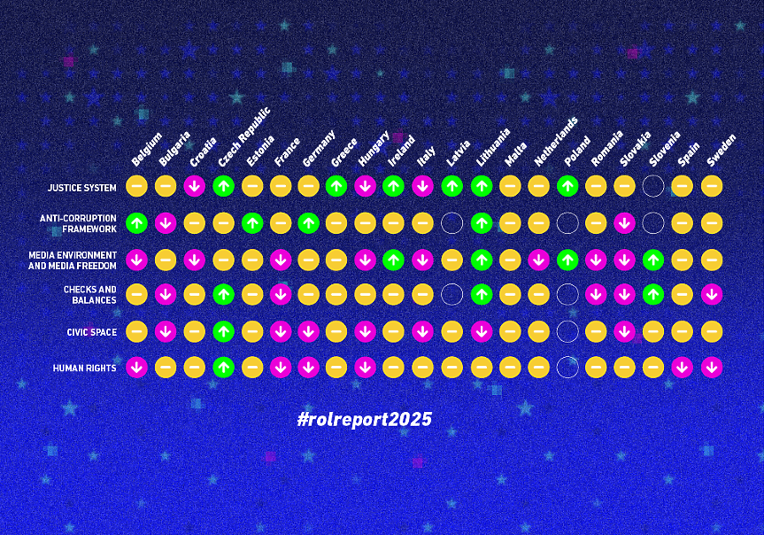 Пълният доклад за върховенството на правото в Европа през 2024 г. (Rule of Law Report 2025) на Liberties е достъпен тук.