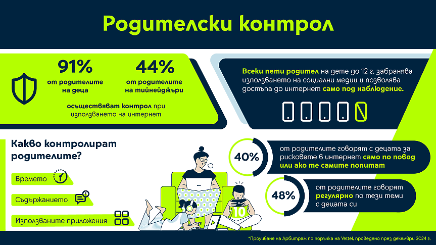 Това подчертава необходимостта от активно участие на родителите за подготовката на подрастващите и защитата им в дигитална среда. Затова през 2025 г. Yettel продължава кампанията „Дигитално родителство“, в която дава на възрастните полезни и практически съвети за изграждане на здравословни навици у децата и поддържане на доверителната връзка родител-дете.