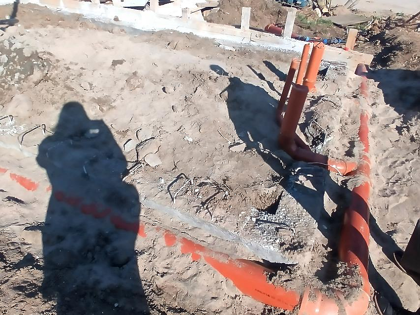 При извършената проверка е установено и че е направен изкоп, в който е излят железобетонен пояс, като към обекта е изградена ВиК мрежа от ПВЦ-тръби.