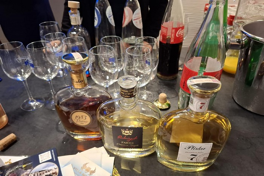 Освен вино, ракия и бренди близо 200-те гости опитаха и български колбаси и сирена.