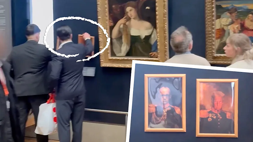 Илгар Алиев и негов приятел (който в YouTube се нарича „bobix.s“) успяха да пренесат портрети на Фридрих Мерц и Доналд Тръмп в музея, като заснеха акцията и споделиха видеото в YouTube.