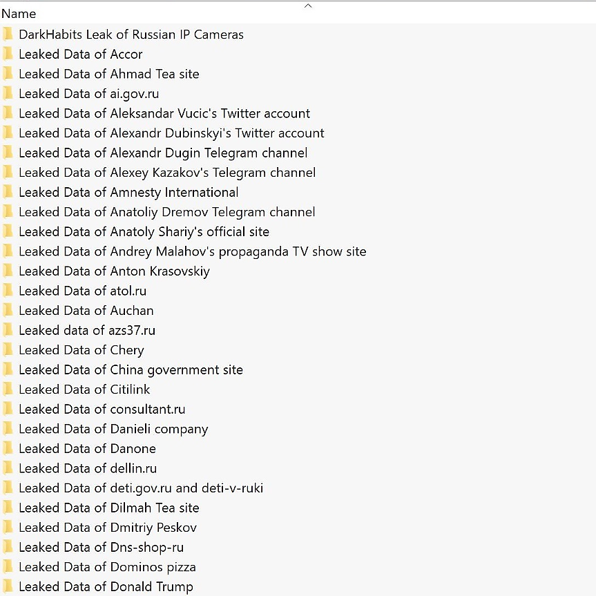Хакерите публикуват и скрийншот с част от папките с хакнати данни: