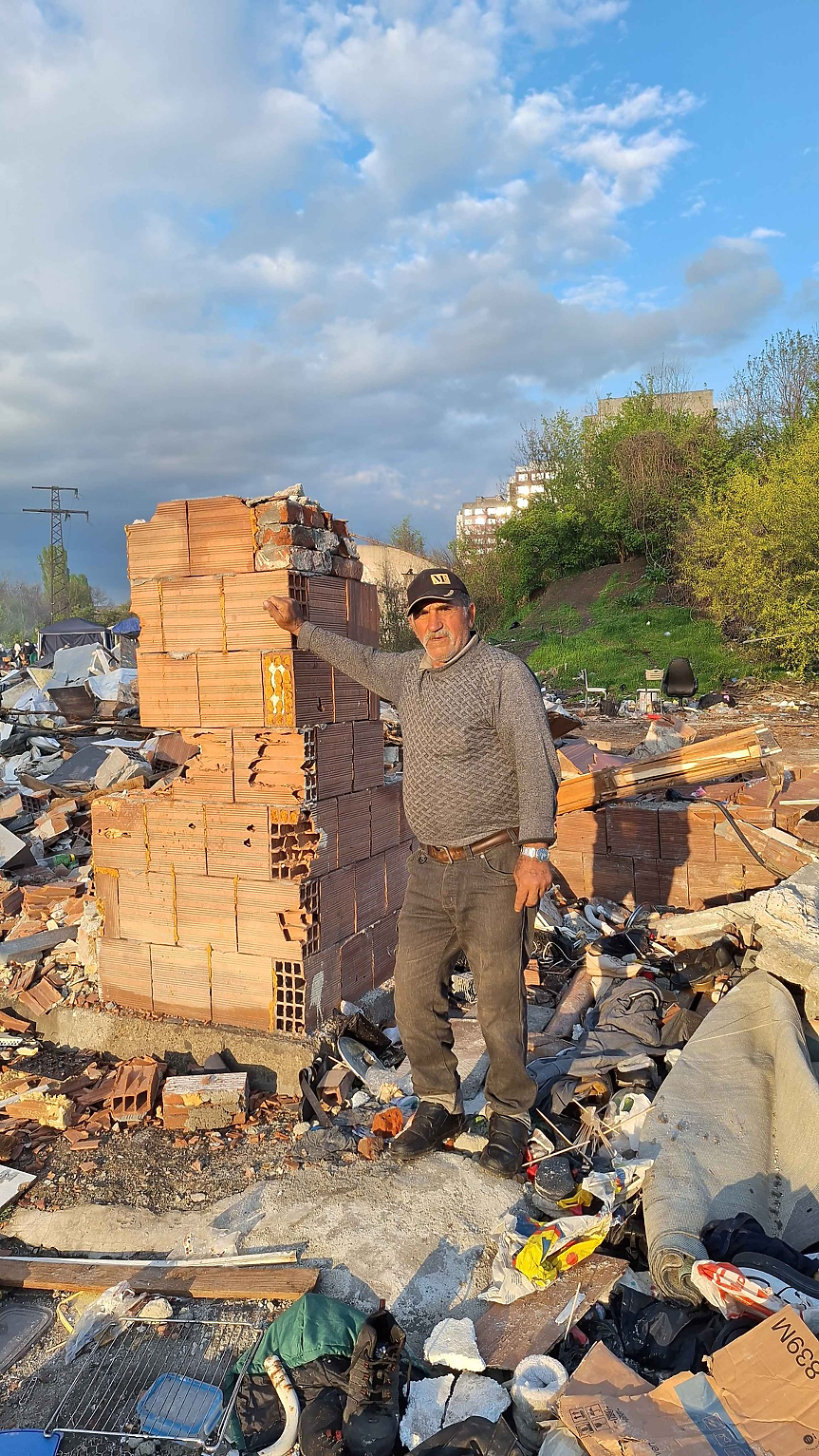 Към нас се присъединява Илия, на 68 години. Роден е тук. Родителите му също са живели в квартала. Показва ми къщата си. Или по-скоро развалините ѝ. Останала е част от тухлена стена. Отбелязвам, че в медиите пише, че са съборени бараки и тенекиени постройки, а Илия ми показва тухлената стена и обръща внимание, че основата е бетонна плоча. Очевидно масивна сграда.