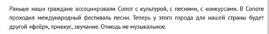 „Преди нашите граждани асоциираха Сопот с културата, с песните, с конкурсите. В Сопот се провеждаше международен фестивал на песента. Сега този град ще има за нашата страна друг привкус и звучене. Далече не музикално.“