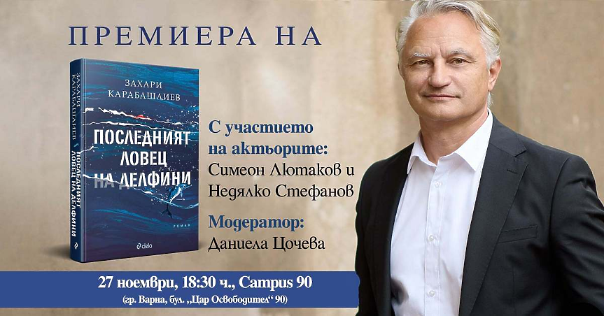 Дръзкият роман „Последният ловец на делфини“ от Захари Карабашлиев потегля към книжарниците за своята първа среща с читателите си в дълбоките води на литературата, която остава пазител на свободата. Творбата ще се появи в две изящни издания – с твърди и меки корици.