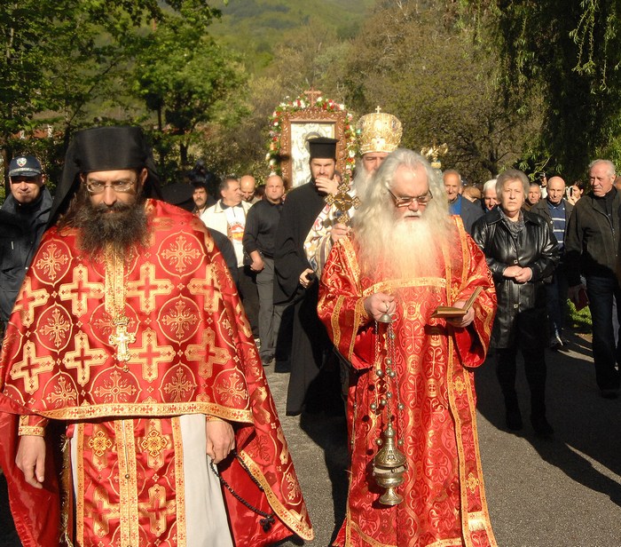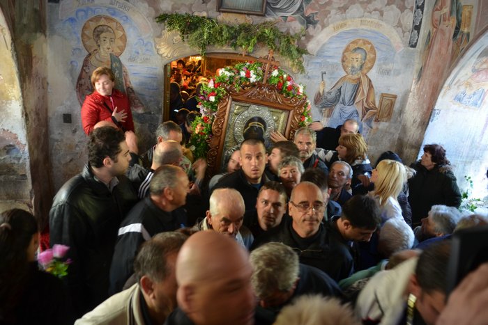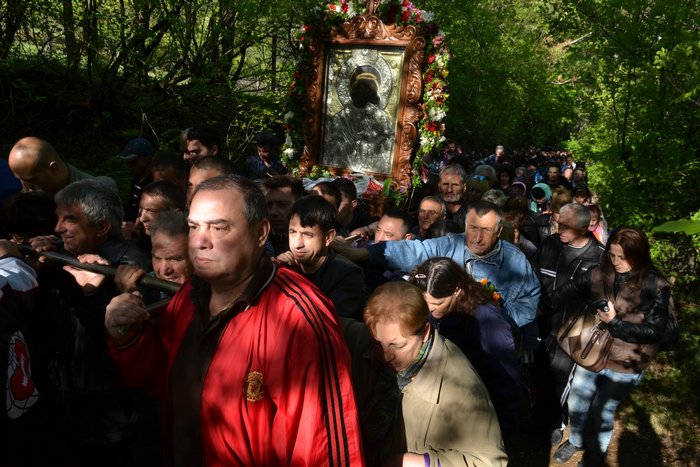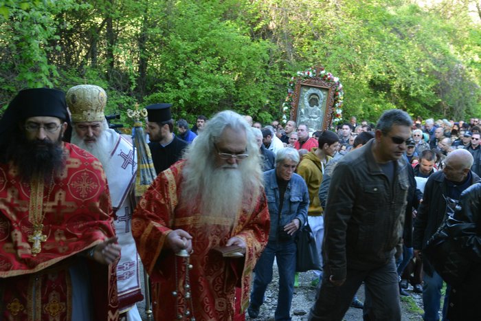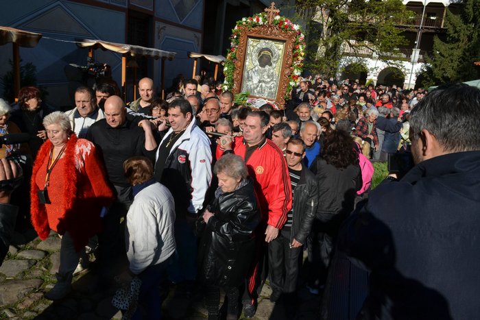 Стотици миряни се събраха днес в Бачковския манастир за изнасянето на чудотворната икона "Света Богородица с младенеца". В 8.30 сутринта литийното шествие, поведено от игумена на манастира отец Симон, изнесе иконата от манастира. Шествието я понесе към Клувията - там, където според легендата две овчарчета са я открили през 1604 година.