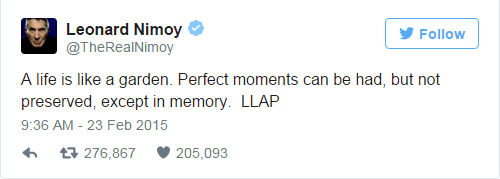 №9 Последното съобщение на актьора, режисьор и фотограф Ленард Нимой, който почина през февруари на 83-годишна възраст.